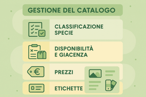 La gestione del catalogo è un elemento chiave per l’efficienza e la competitività di un vivaio moderno. Un sistema ben strutturato consente di organizzare in modo preciso tutte le varietà di piante, alberi, arbusti e prodotti correlati, facilitando la consultazione da parte di clienti, rivenditori e operatori interni.